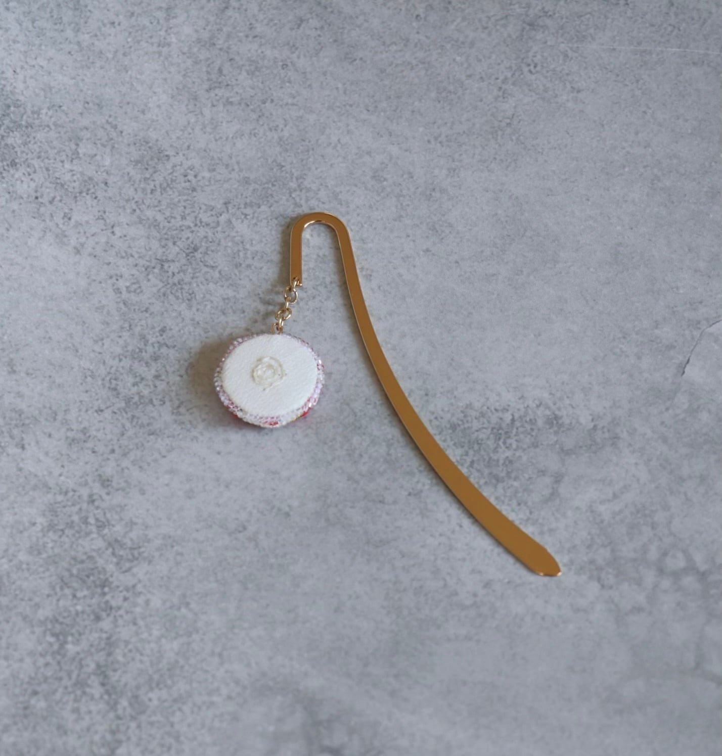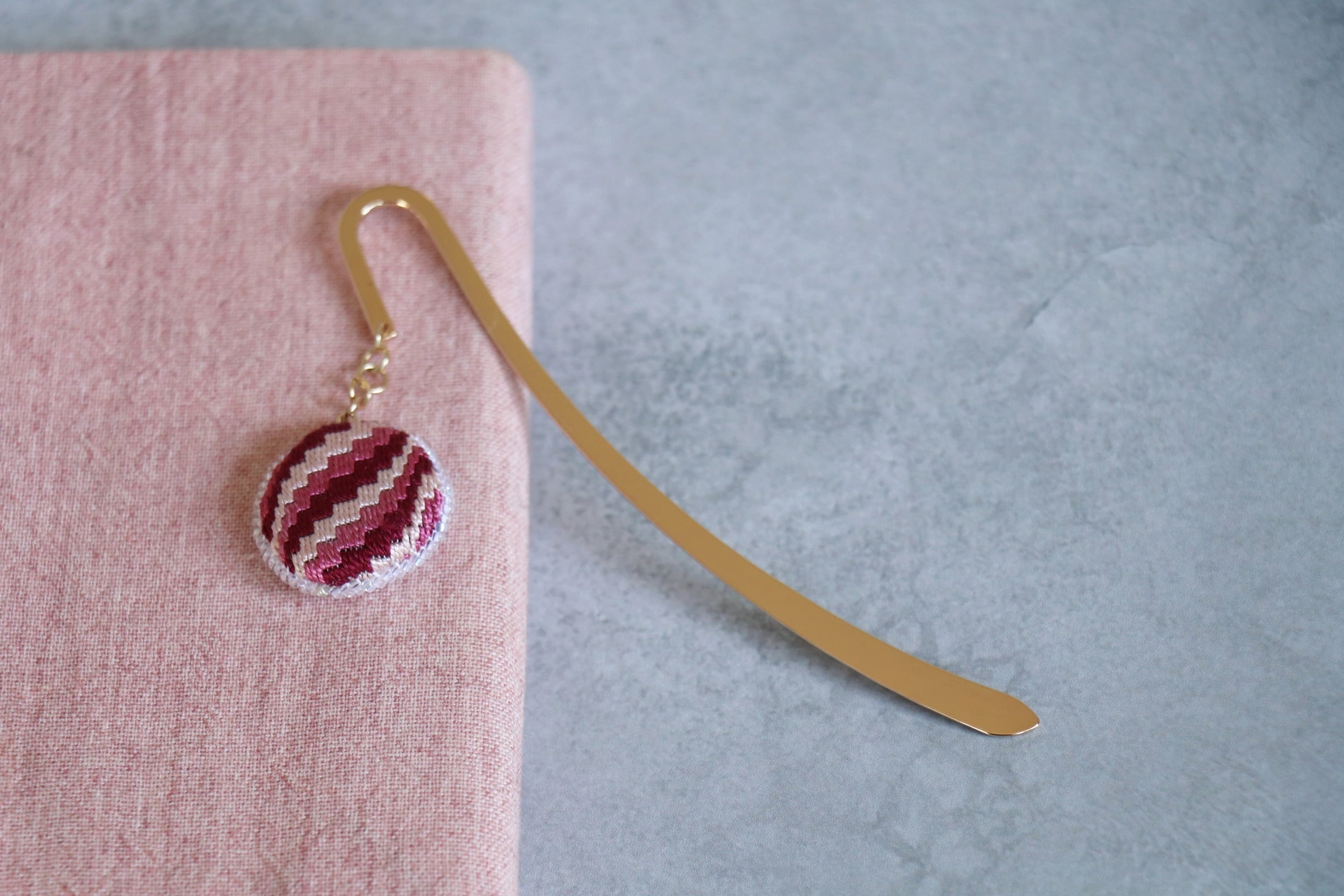 直径2.5cmの刺繍チャームが本の間で揺れるたびにふと思う。