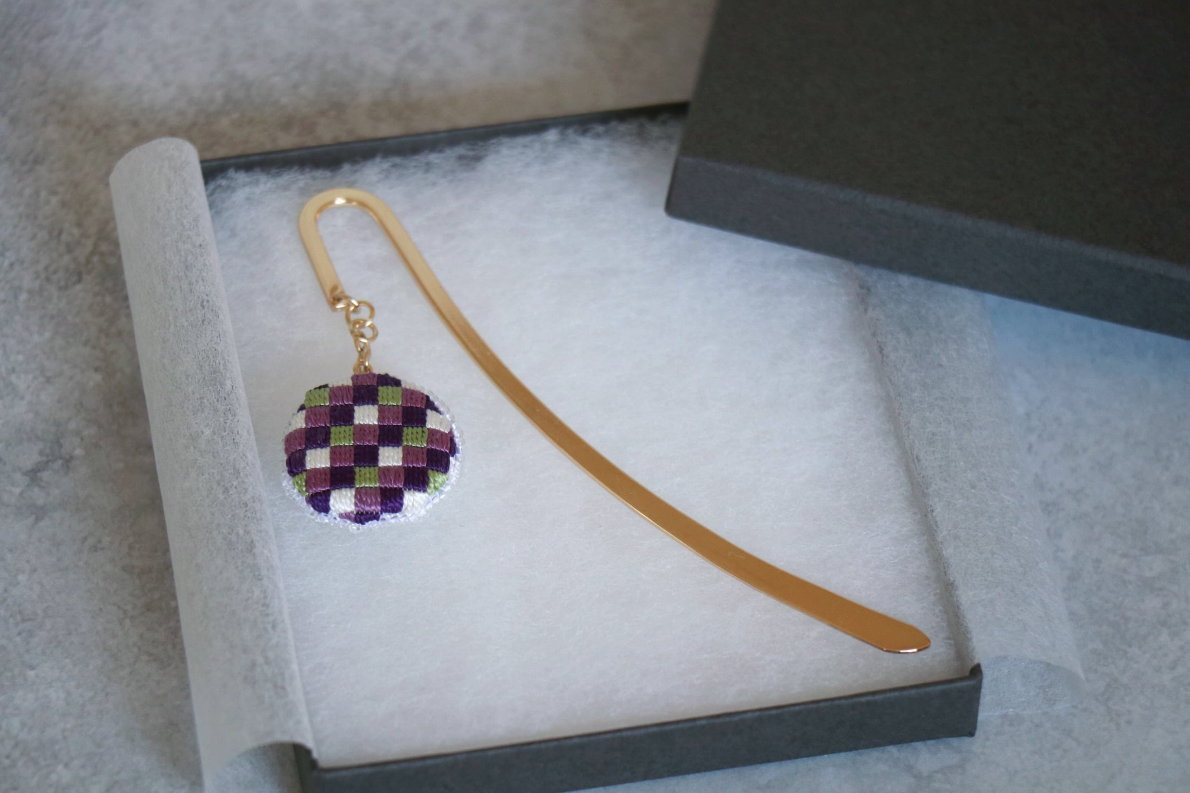 直径2.5cmの刺繍チャームが本の間で揺れるたびにふと思う。