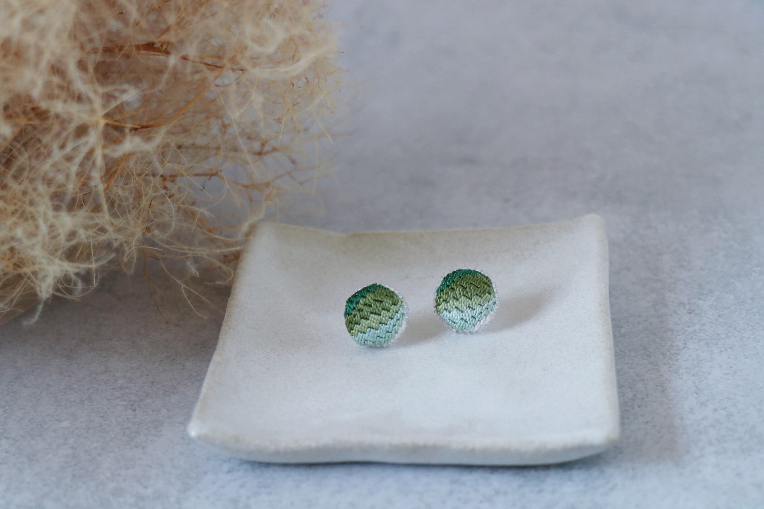国産絹糸の絽ざしピアス 絹のうつろい 苔むした庭 グラデーション
