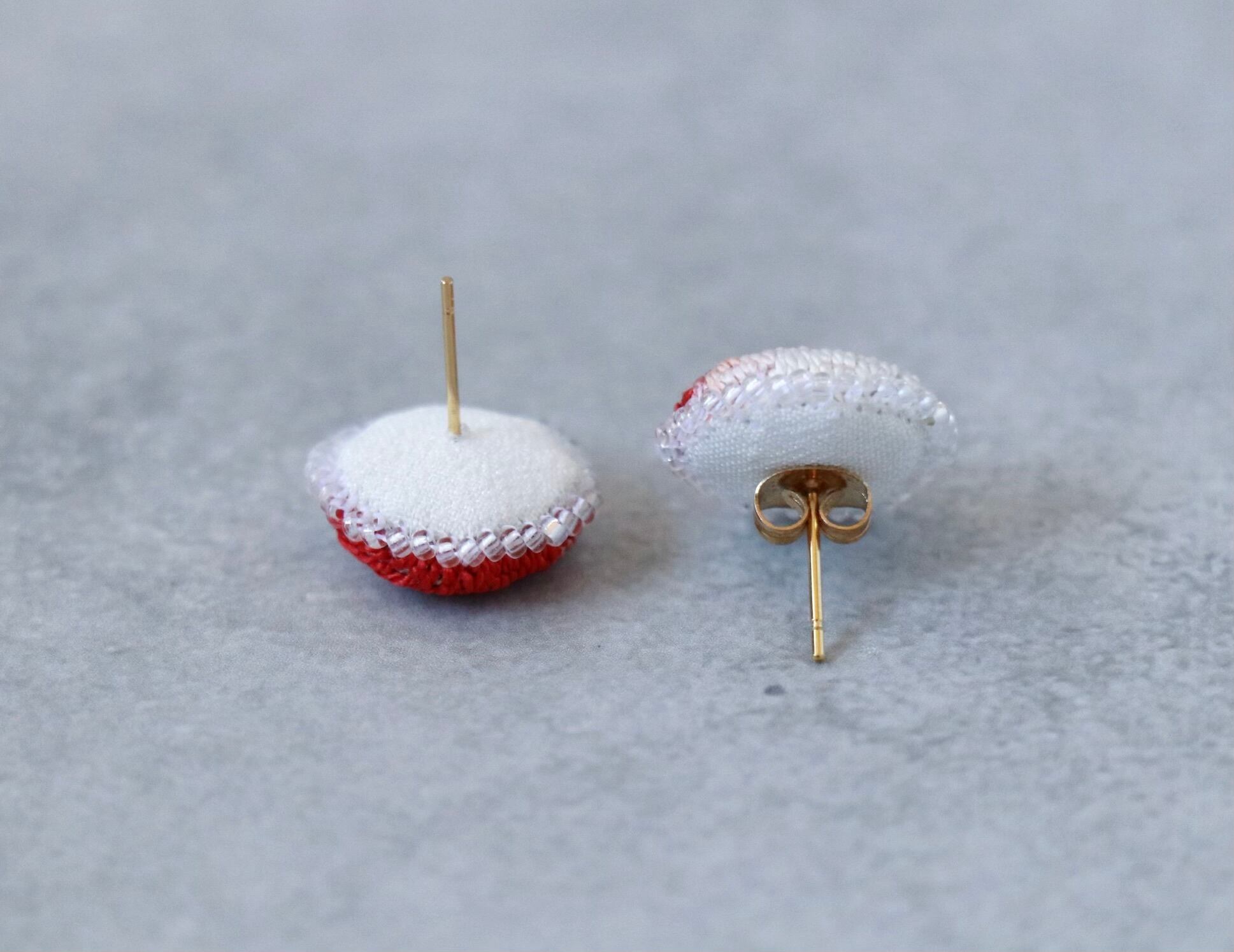 国産絹糸を使用し、伝統刺繍技法 絽ざしで仕立てた小ぶりの和モダンピアスです。